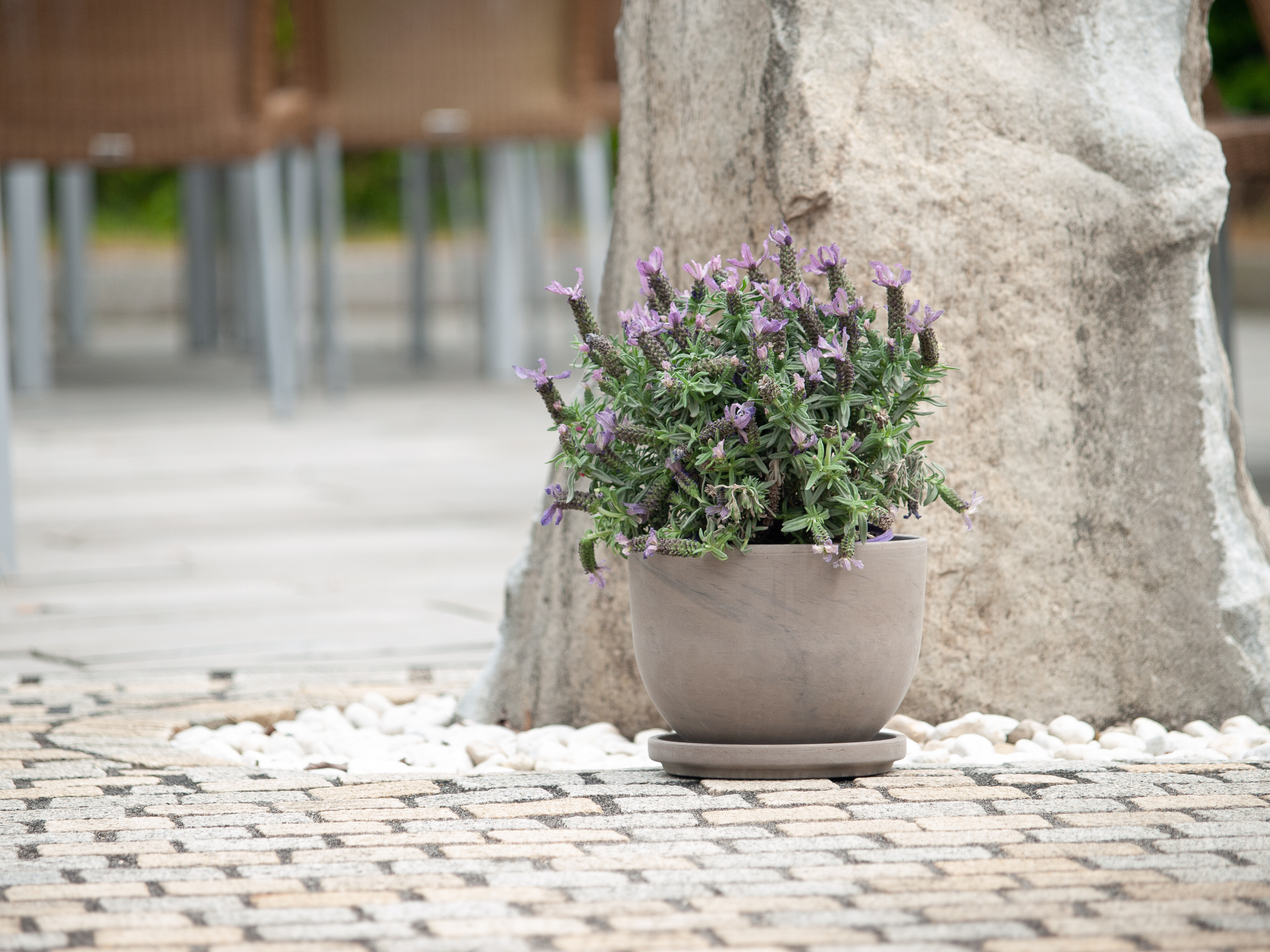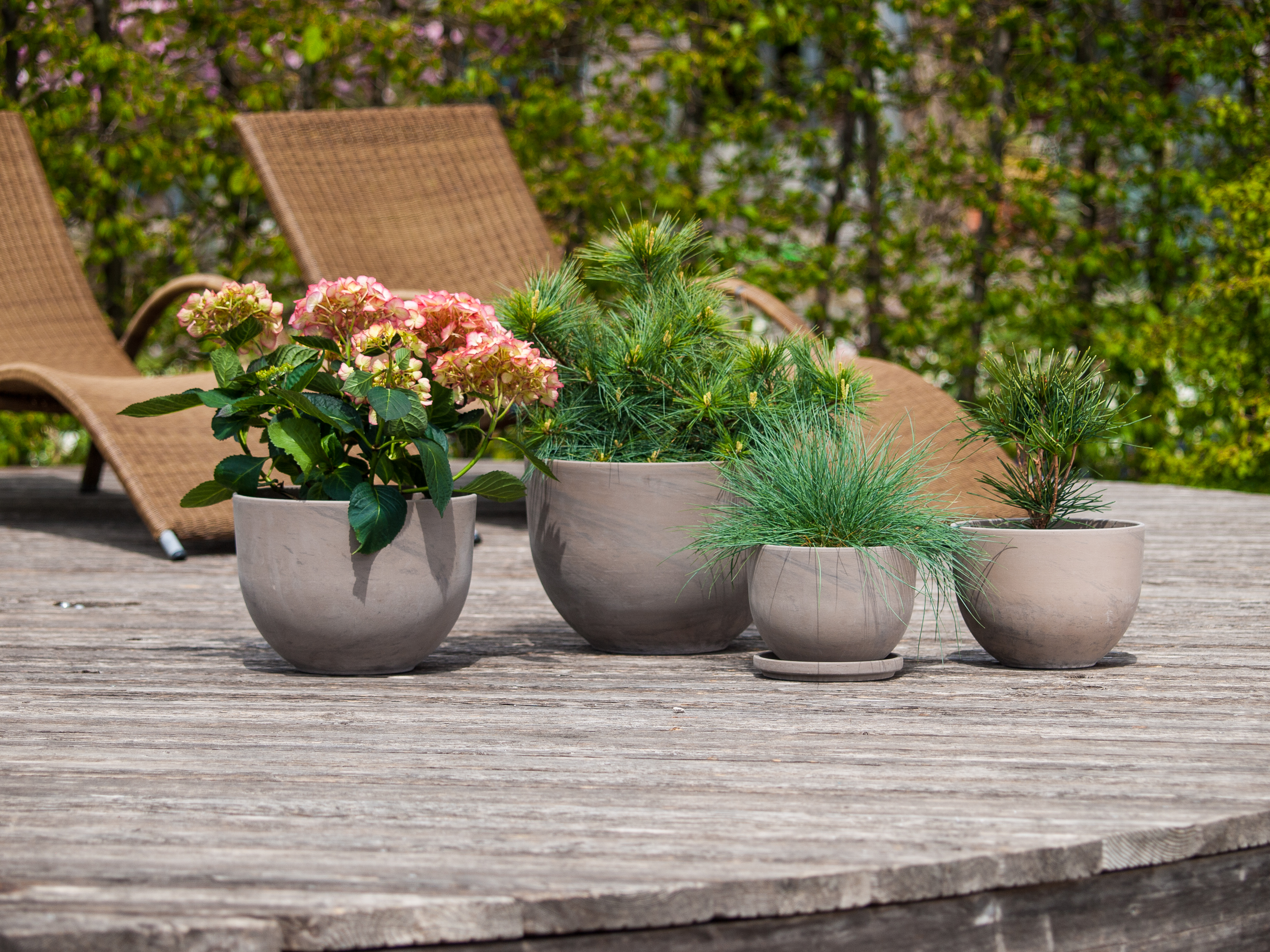 Inspiriert von unserer Erfolgsserie Luna Sphere, hat der Pflanztopf Elara eine ähnlich niedrige Pflanzhöhe bei eleganter Optik. Das neue Trendgefäß erhalten Sie in bei uns Basalt und Granit.