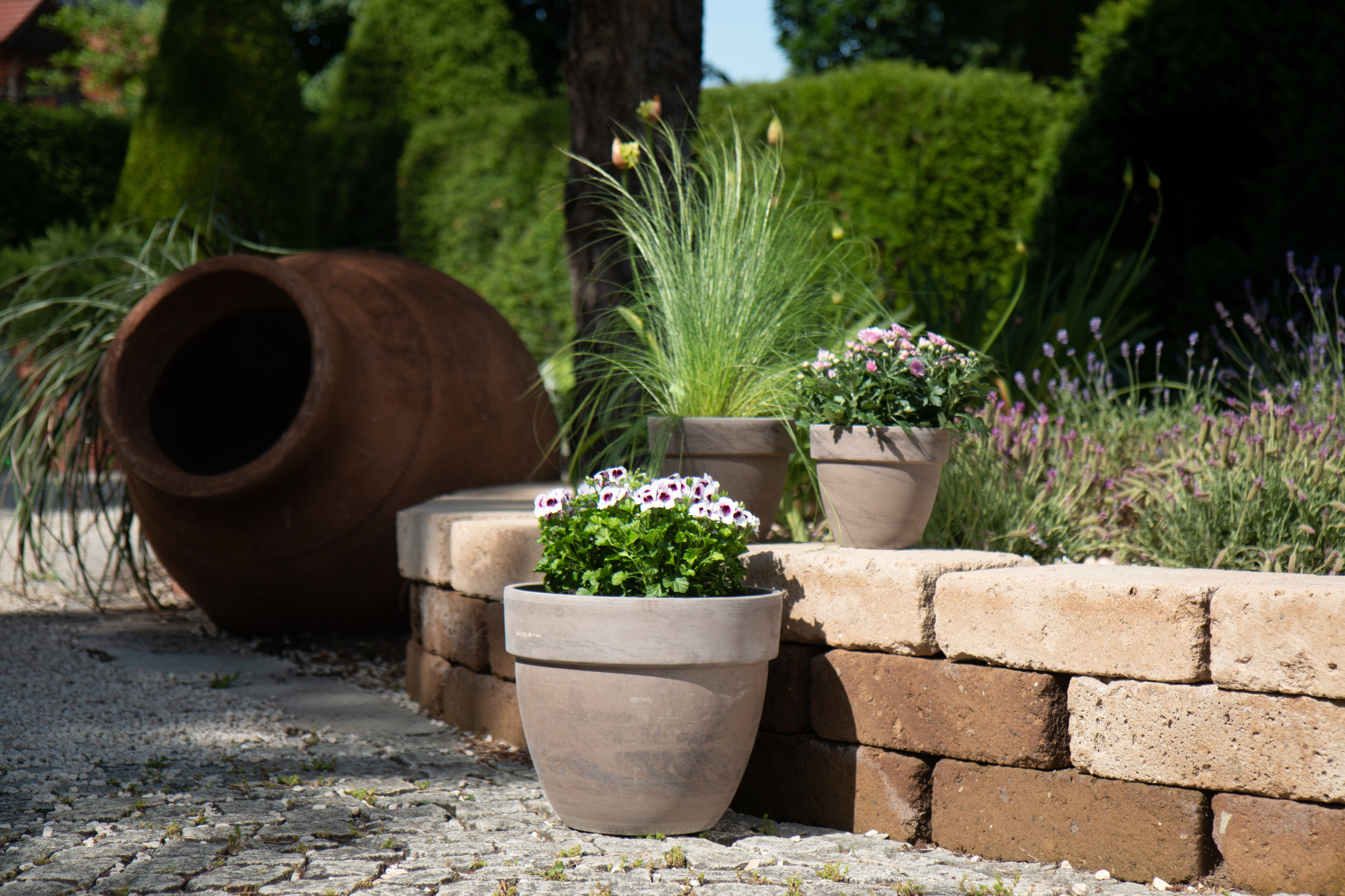 Der Pflanztopf Levante besticht durch seine bauchiges Pflanzvolumen. Der gedrungene Pflanztopf ist in marmor und basalt Ton erhältlich.